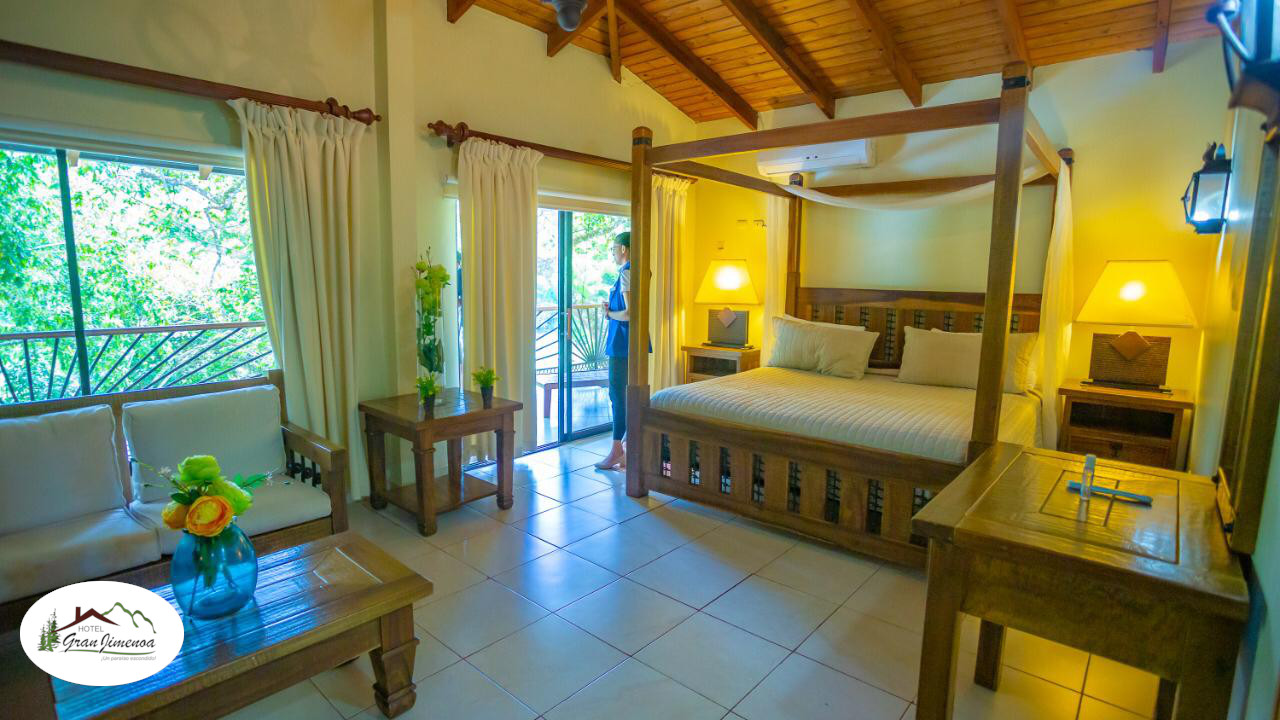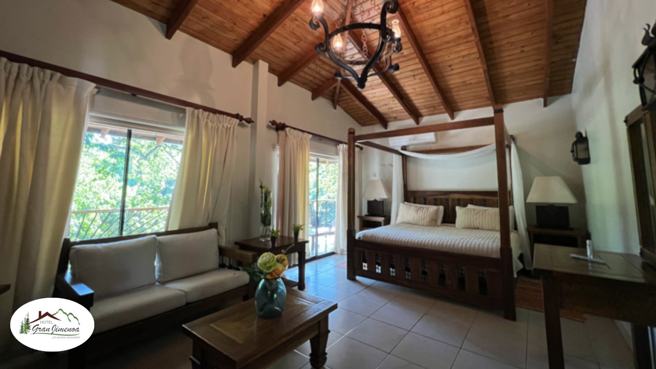 Our suite is unique and exclusive in the hotel, it has a king size bed, cable TV, telephone, safe, a small kitchen, executive fridge, living room with a sofa and cable TV, air conditioning, hot/cold water and hair dryer, as well as balcony with dining room and river view.